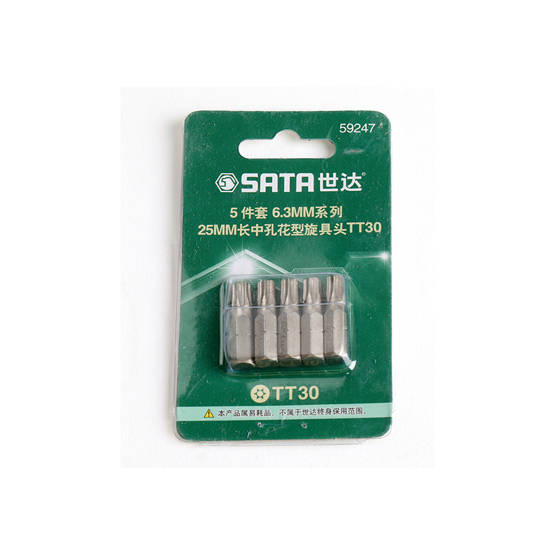 世達(dá)5件套6.3MM系列25mm長中孔花型旋具頭T25 |