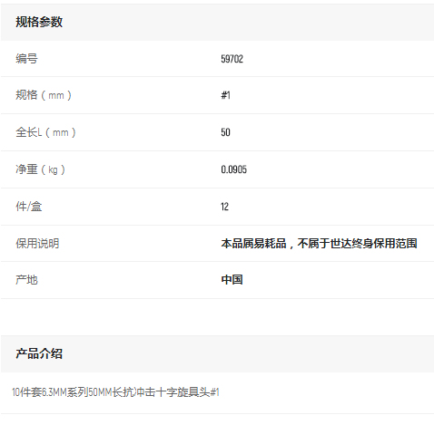 首頁>產(chǎn)品中心>螺絲批>旋具頭>世達(dá)10件套6.3MM系列50mm長十字旋具頭#1