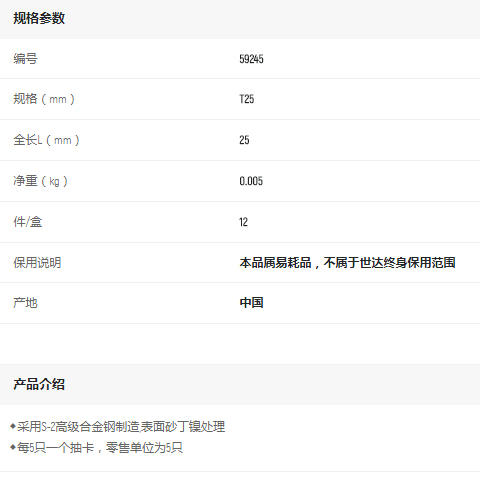 產(chǎn)品名字:世達5件套6.3MM系列25mm長中孔花型旋具頭T25