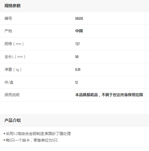 產(chǎn)品名字:世達(dá)5件6.3mm系列50mm旋具頭T27