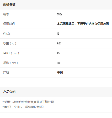 產(chǎn)品名字:世達(dá)5件套6.3mm系列25mm長中孔花型旋具頭TT8