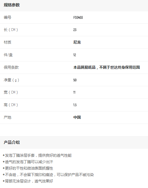 產(chǎn)品名字:世達丁腈手套(掌浸)9寸