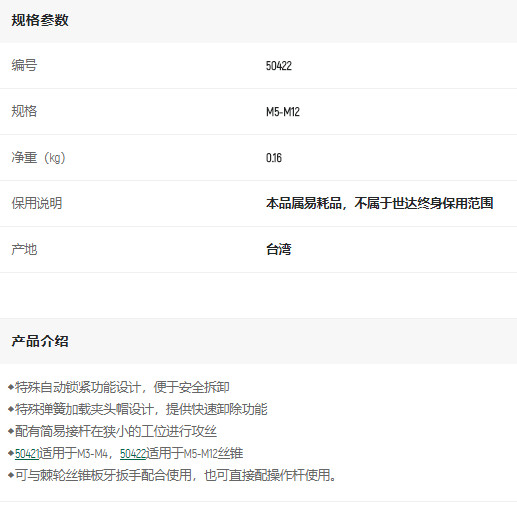 首頁(yè)>產(chǎn)品中心>其他手動(dòng)工具>其他手動(dòng)工具及配件>世達(dá)絲錐轉(zhuǎn)接頭M5-M12