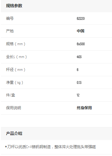首頁>產品中心>螺絲批>一字螺絲批>世達A系列一字批6*300mm