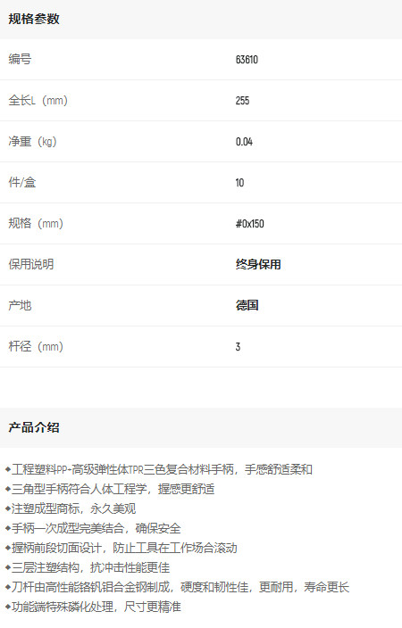 產品名字:世達G系列十字批0#*150