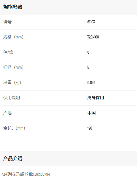 首頁>產(chǎn)品中心>螺絲批>花形螺絲批>世達(dá)花形螺絲批T20*100mm