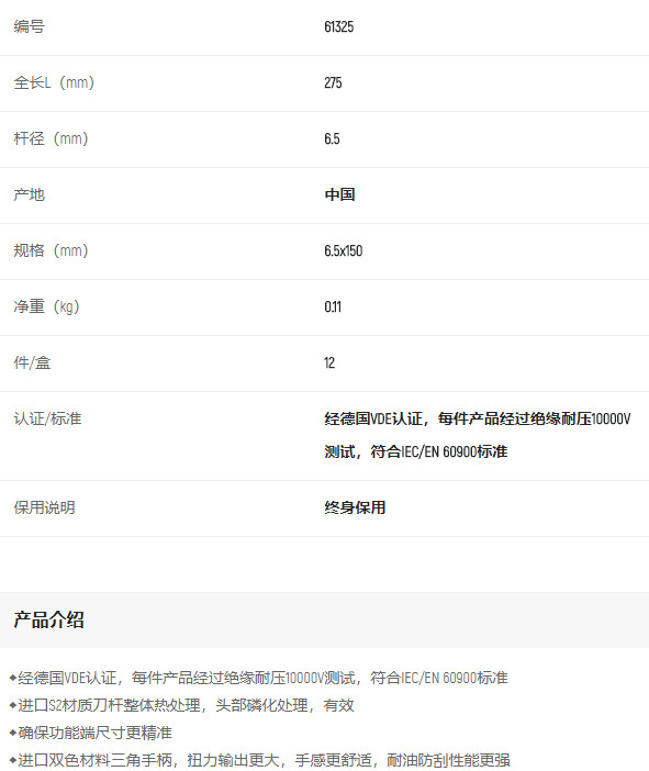 產(chǎn)品名字:世達(dá)T系列雙色柄一字絕緣螺絲批6.5x150MM