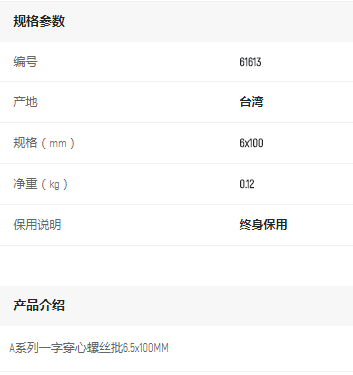產(chǎn)品名字:世達(dá)A系列一字穿心螺絲批6*100MM